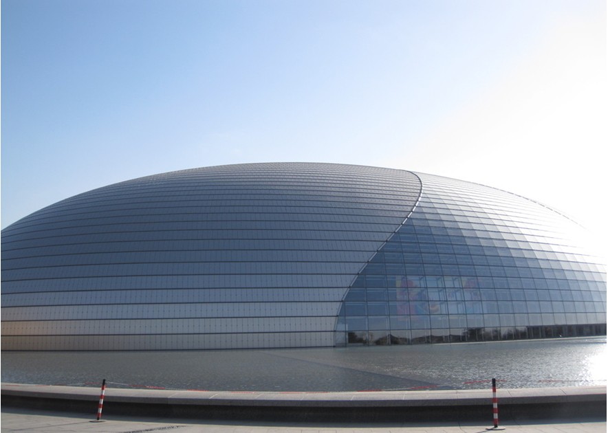 國家大劇院造型新穎、前衛(wèi),構(gòu)思獨(dú)特,是傳統(tǒng)與現(xiàn)代、浪漫與現(xiàn)實(shí)的結(jié)合。