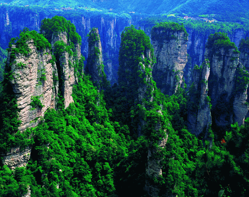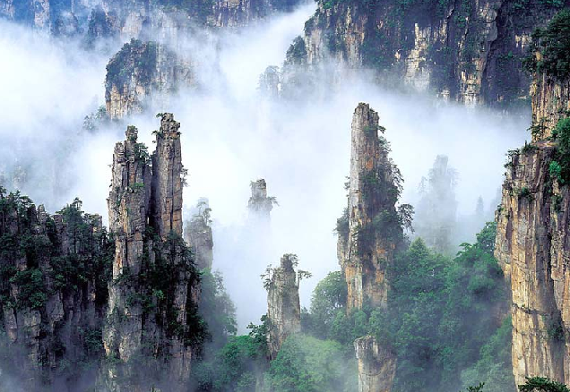 武陵源屬世界上罕見(jiàn)的砂巖風(fēng)林地貌,整個(gè)景區(qū)內(nèi),溝壑縱橫,巖峰高聳,綠樹(shù)翠曼,獸鳥(niǎo)成群,有“大自然迷宮”、“天下第一奇山”這美譽(yù)。億萬(wàn)年前,這里曾是一片波濤翻的海洋。歲月悠悠,滄海桑田。大自然威力無(wú)邊的“燕山運(yùn)動(dòng)”,將這里逐漸抬升為陸地、山脈、江河,隨后又以揮灑自如的鬼斧神工在這里“穿透切割”、“精雕細(xì)琢”,從而有了今天這般個(gè)有原始生態(tài)體系的砂巖、峰林、峽谷地貌,構(gòu)成了溪水潺潺、奇峰聳立、怪石崢嶸的獨(dú)特自然景觀。
