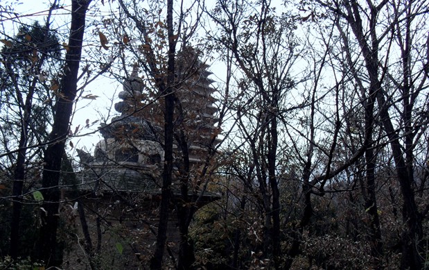 位于法王寺后山坡上,在密檐式唐塔的東邊百余米,共3座,均為四角形單層磚塔。雖然銘記已丟失,塔剎和塔基有所剝落,但仍可看出它的造型和制作手法。南面一座塔高約10米,周長17.52米,壁厚1.33米。塔剎上置覆缽,一半球形磚砌臺墩,四周鑲砌8塊雕花石。為覆缽之上有仰蓮式石刻圓盤綬花,綬花之上軒置鼓鏡式相輪,最上端為一石雕寶珠。塔剎一周雕刻有蓮花卷草、飛天等浮雕,圖案精美,為嵩山古塔中之僅見。這3座唐塔皆用黃泥混溶凝固,千百年來,雖歷經(jīng)滄桑,但仍傲然屹立,并保持著初建時面貌,為研究唐代的建的建筑藝術(shù)提供了重要資料。