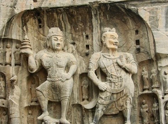 奉先寺,原名大盧舍那像窟,版權(quán)所有山東聊城聊之旅國(guó)際旅行社有限公司,轉(zhuǎn)載必究!位于洛陽(yáng)市龍門石窟西山南部,始雕年代說法不一,有說是唐代咸亨三年(672年)開始雕鑿,至唐代上元二年(675年)完成,是龍門石窟中規(guī)模最大、藝術(shù)精美、最具有代表性的大龕。版權(quán)所有山東聊城聊之旅國(guó)際旅行社有限公司,轉(zhuǎn)載必究!奉先寺南北寬約34米,東西深約36米,置于9米寬的三道臺(tái)階之上,龕雕一佛、二弟子、二脅侍菩薩、二天王及力士等十一尊大像。奉先寺是龍門石窟中規(guī)模最大、最具有代表性的露天佛龕,形態(tài)各異、刻畫傳神的造像顯示了盛唐雕塑藝術(shù)的高度成就,成為石雕藝術(shù)史上的奇觀。