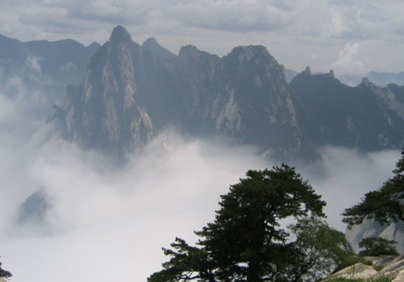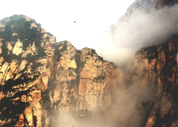 太室山,主峰峻極峰為嵩山之東峰,海拔1492米,主要建筑為中岳廟、據(jù)傳,禹王的第一個妻子涂山氏生啟于此,山下建有啟母廟,故稱之為“太室”(室:妻也。)。太室山共三十六峰,巖幛蒼翠相間,峰壁環(huán)向攢聳,恍若芙蓉之姿。主峰“峻極峰”,則以《詩經(jīng)•嵩高》“峻極于天”為名,后因清高宗乾隆游嵩山時,曾在此賦詩立碑,所以又稱“御碑峰”。登上峻極峰遠(yuǎn)眺,西有少室侍立,南有箕山面拱,前有潁水奔流,北望黃河如帶。倚石俯瞰,腳下峰壑開綻,凌嶒參差,大有“一覽眾山小”之氣勢。山峰間云嵐瞬息萬變,美不勝收。正如詩中所說:“三十六峰如髻鬟,行人來往舒心顏。白云蓬蓬忽然合,都在虛無縹緲間。”