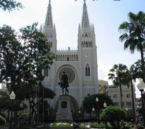 瓜亞基爾城中心是一百年廣場,廣場上高聳著1920年修建的巨大的解放紀(jì)念碑。著名的弗朗西斯科大教堂在廣場不遠(yuǎn)的地方,這座建筑氣勢宏偉,裝飾華麗,是瓜亞基爾的建筑珍品。教堂前面有一座風(fēng)景優(yōu)美的公園,在公園樹林深處可觀賞到各種珍貴動物。瓜亞基爾最繁榮的街道是10月9日大道,路旁商店比鱗而立,人群擁擠。大道穿過一百年廣場,通向馬萊孔濱水區(qū),濱水區(qū)沿瓜亞斯河岸鋪開。壯觀典雅的市政廳和政府官就坐落在這一帶。漫步街頭,可看到南美獨(dú)立運(yùn)動的領(lǐng)袖玻利瓦爾和圣馬丁的塑像。1822年7月26日—27日,這兩位民族英雄就在此共商大計,決心把西班牙殖民者全部趕出拉美大陸并爭取南美各國的徹底獨(dú)立。這次歷史性的會晤為南美人民贏得了偉大的勝利。