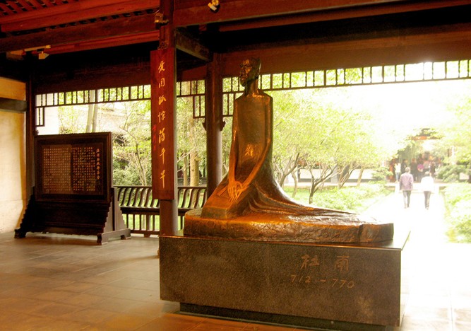 杜甫先后在此居住近四年,創(chuàng)作詩歌流傳至今的有240余首。其中的《聞官軍收河南河北》現(xiàn)已成為不少地區(qū)學生必學課。草堂故居被視為中國文學史上的“圣地”。