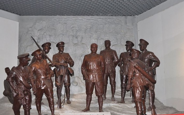 中國(guó)人民解放軍軍事博物館美術(shù)設(shè)計(jì)處的設(shè)計(jì)師張飆說(shuō),為使人物的表情更加生動(dòng),全體創(chuàng)作人員都到部隊(duì)去體驗(yàn)生活達(dá)20多天,與戰(zhàn)士們同吃同住,捕捉他們的神情,這12個(gè)人物雕像都有軍人的原型,最后才有了這一經(jīng)典之作。