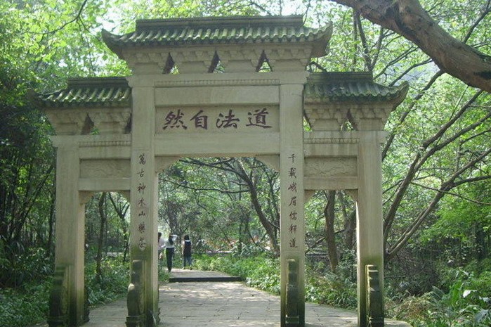 以清幽靜雅取勝的洪椿坪,坐落在眾山群峰環(huán)抱之中。坪上,云低霧濃,古木蔥蘢,濤聲殷殷,山鳥(niǎo)長(zhǎng)鳴。洪椿坪建于明萬(wàn)歷年間,原名千佛禪院,以寺外有三株洪椿古樹(shù)而得名。寺中有對(duì)聯(lián)曰:“佛祖以億萬(wàn)年作晝,億萬(wàn)年作夜;大椿以八千歲為春,八千歲為秋。”以“大椿”來(lái)比喻洪椿樹(shù)的古老和寺廟的歷史悠久。