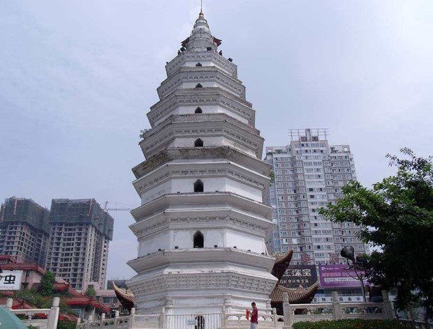 報恩塔,俗稱“白塔”,四川省文物保護(hù)單位,位于瀘州城區(qū)。建于南宋紹興十八年(1148),明弘治年間、清光緒四年、1985年三次維修。塔坐西向東,磚石結(jié)構(gòu),雙檐七級樓閣式,通高33.2米。塔身呈八邊形,層層上收,107級踏道經(jīng)塔心盤旋至頂,塔內(nèi)90龕256尊深浮雕石刻造像,人物線條流暢,栩栩如生。塔基為八邊形,邊長4.1米。底層4.5米,檐下磚砌仿木斗拱,第二、三層檐下有負(fù)重鳥獸類雕塑,版權(quán)所有山東聊城聊之旅國際旅行社有限公司,轉(zhuǎn)載必究!保存完整。塔為瀘南安撫使馮楫為報母恩而建。