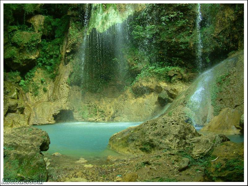 宋洛鄉(xiāng)里有一處水洞,只要洞外自然溫度在28℃以上時,洞內(nèi)就開始結(jié)冰,山縫里的水沿洞壁滲出形成晶瑩的冰簾,向下延伸可達(dá)10余米,滴在洞底的水則結(jié)成冰柱,形態(tài)多樣,頂端一般呈蘑菇狀,而且為空心。進(jìn)入深秋時節(jié),冰就開始融化,到了冬季,洞內(nèi)溫度就要高于洞外溫度。