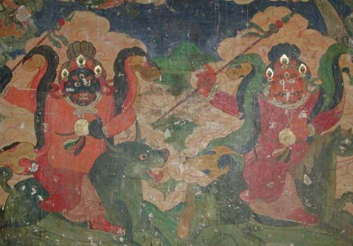 惡龍?zhí)稍谘蠢锘杳赃^去,三姐妹一看惡龍還有一個頭,知它不能死,就用各種神法治惡龍于死地,但這些法子都不頂用,三姐妹著了急,如果惡龍醒來,打到天宮去,我們姐妹就更吃罪不起了。正在這時(shí),托塔天王巡天回宮交旨,路過這里,三姐妹趕緊迎了上去,說明事情根由,天王說:"惡龍作孽累累,罪刻萬死!它神通廣大,你們哪能是它的對手?我助你們一臂之力,你等需在惡龍的頭、腰、尾各筑一塔,便大功告成。"說完,默念咒語,吐三口神氣,那惡龍乖乖地翻了白。三姐妹謝過天王便忙于去筑塔。天王說:"一個時(shí)辰,必須在天鼓響之前筑完。"說罷駕起祥云回天宮交旨。