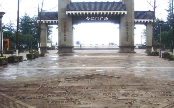 合江門金沙江、岷江交匯一側(cè)緊臨合江門地標(biāo)廣場(chǎng),建成時(shí)間是2001年3月20日。占地面積1.83萬(wàn)平方米,有噴泉、牌坊、宜賓賦等景觀。