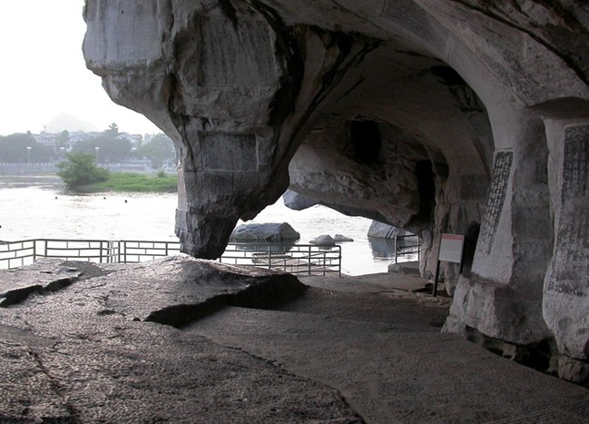 相傳古時(shí)有一老漁翁,在還珠洞拾得龍珠而惹怒海龍王,其興風(fēng)作浪,給百姓帶來災(zāi)害。后官府命老翁將龍珠歸還,方使天下太平,故此得名。洞內(nèi)玲瓏剔透,勾連曲暢,有唐人造像、宋代題刻100多件,其中宋代大書畫家米芾的題名、自畫像和詩人范成大的題詩堪稱珍品。洞的東面豁然開朗,洞口下面即是深不見底、碧波幽水的伏波潭。臨江有一石柱下垂,上粗下細(xì),底端有一寸多的空隙與地面相接,似被劍劈而開,堪稱鬼斧神工。傳說是伏波將軍試劍所致,故稱試劍石。有好奇的游人,都曾伏在試劍石下方的大石塊上,伸手摸一摸這奇妙的縫隙。 千佛洞從試劍石旁沿石階盤桓而上,可達(dá)千佛洞,內(nèi)有唐代摩崖造像239尊,加上僅有斧鑿痕跡尚未成形的共有400尊之多,成為唐代崇尚佛法,佛教盛極一時(shí)的標(biāo)志,具有很高的鑒賞和研究價(jià)值。