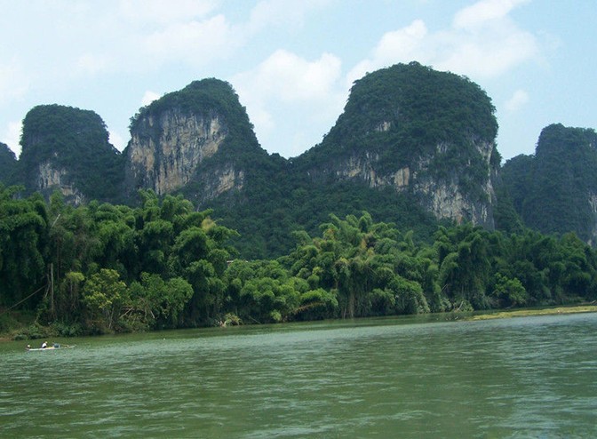 如果說桂林的山是“鳥鳴山更幽”,那么,桂林的水則是清澈透明﹑綠得欲滴。俯首看去,江水泛著細(xì)細(xì)的漣漪,玉塔微瀾,水色晶瑩剔透,加之兩岸竹林婀娜多姿,山水相映成趣,怎么看都是一幅長(zhǎng)長(zhǎng)的山水畫,凝重中透露著靈動(dòng)之氣,真是“舟行碧波上,人在畫中游”。