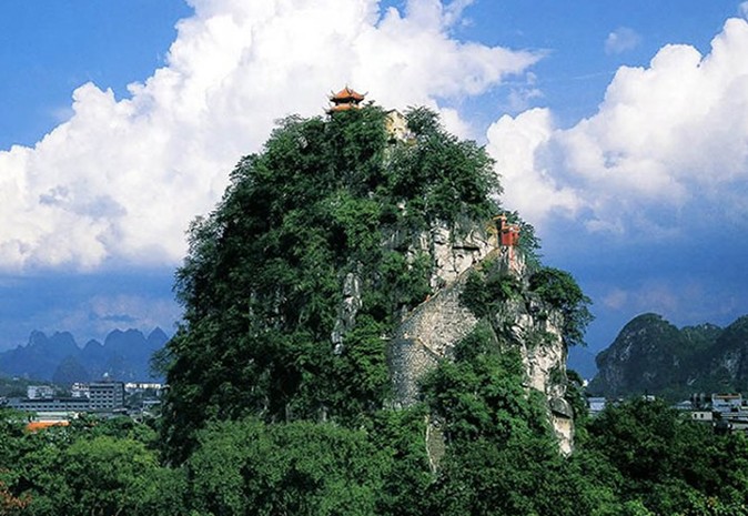 獨(dú)秀峰位于市中心以靖江王城內(nèi),孤峰突起,,陡峭高峻, 氣勢雄偉,素有“南天一柱”之稱。山東麓有南朝劉宋時(shí)文學(xué)家顏延元讀書巖,為桂林最古老的名人勝跡。顏曾寫下“未若獨(dú)秀者,峨峨郛吧間”的佳句,獨(dú)秀峰因此得名。假當(dāng)晨曦輝映或晚霞夕照,孤峰似披紫袍金衣,故又名紫舍山。