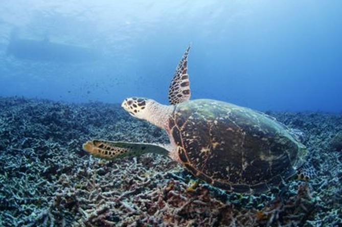 海龜是海洋龜類的總稱,是所有龜鱉類動物中唯一生活在海洋的物種,分布范圍十分廣泛,分布于除北冰洋外的全球海域中。背上有殼,較一般陸龜或河龜來得花紋復雜,殼的外型是扁平流線形。海龜的腳為適應長途游泳,演化成船槳狀。