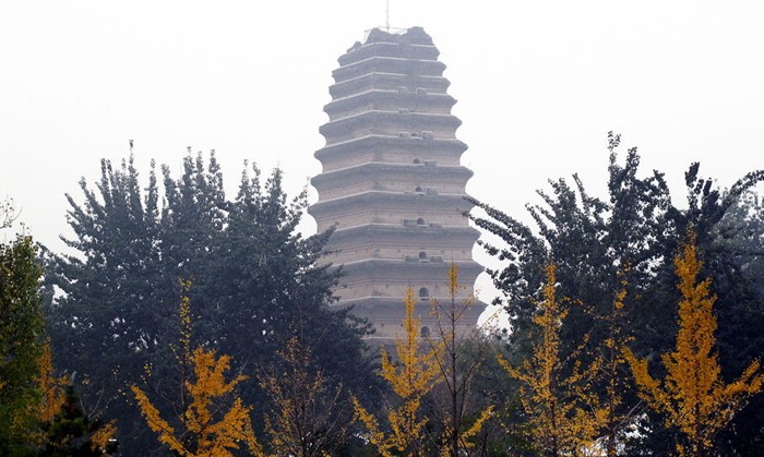 相傳景龍元年(707年),唐中宗李顯令宮人攤錢,在安仁坊建造一座秀麗的高塔,形似慈恩寺大雁塔,唐宋時期被稱為“薦福寺塔”。后世因它比大雁塔小巧,又改名“小雁塔”。塔身原為15層,高約45米;后為地震震坍,只剩下13層,殘高43.3米。塔的平面呈正方形,為密檐式建筑。
