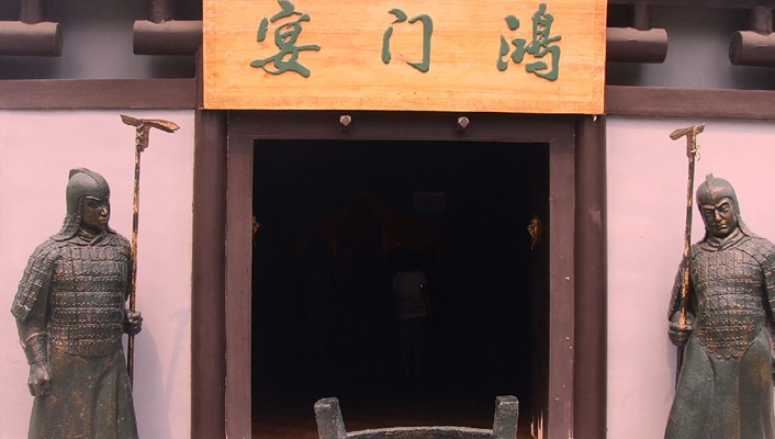 公元207年,項羽從謀士范增之計,在鴻門設宴,企圖借機殺掉劉邦,于是演出了一幕“鴻門宴”,著名的典故“項莊舞劍,意在沛公”就是指這段故事?,F(xiàn)存遺址用青磚砌成,十米高的旗桿上飄揚著杏黃色的帥旗,臺子北面建了一座蒙古包似的軍帳,門口高掛“楚高軍旗”,帳內模擬當時的宴會場面,軍帳用玻璃鋼制成,里面塑有“項莊舞劍、樊噲闖帳”等塑像,生動的再現(xiàn)了當年戰(zhàn)事中的重要一幕。