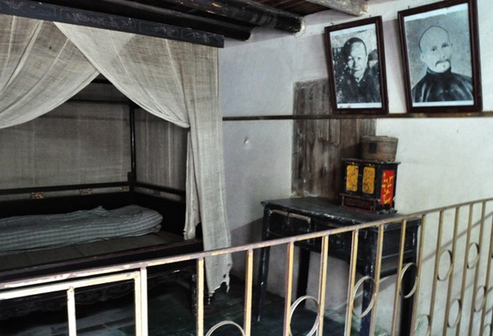 右側(cè)第一間是廚房,版權(quán)所有山東聊城聊之旅國際旅行社有限公司,轉(zhuǎn)載必究!第二間為葉帥父母親的臥室,墻上懸掛著葉帥雙親的遺像,臥室里擺著古典風(fēng)格的木床、木桌、木椅等。