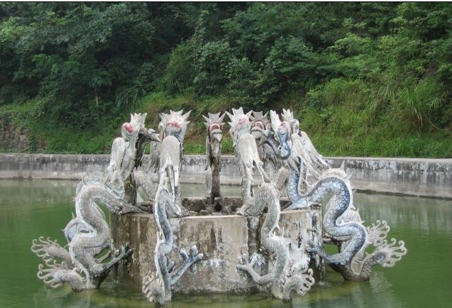 寺廟建筑是九龍山美景的重要組成部分。凡名山勝跡,都伴以殿宇亭榭古樸建筑作景。九龍山很早就有廟宇建在龍鼻山頭上,為鄉(xiāng)民信士進行祭祀游覽的活動場所。九龍山古有“九仙廟山”之稱。所謂九仙者,意為多種神仙。我國道家立上仙、高仙、大仙、玄仙、天仙、真仙、神仙、靈仙、至仙為九仙,據(jù)創(chuàng)修九龍山子孫堂碑記載,舊有佛殿、真武殿、關(guān)帝殿、靈宮殿,日久毀壞。