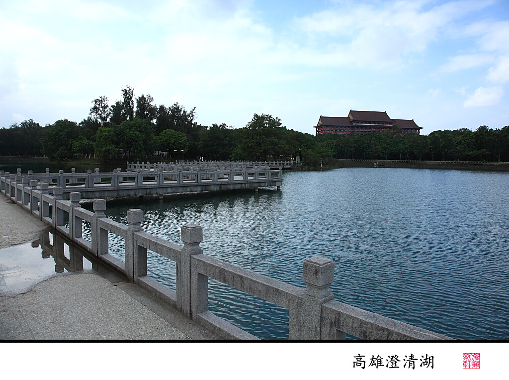 澄清湖位于高雄縣鳥松鄉(xiāng),是高雄第一大湖,舊名“大埤湖”或“大貝湖”,媲美大陸的西湖,也是重要的水源地和風(fēng)景區(qū)。梅隴春曉、曲橋釣月步入巍峨的觀光大門一眼就見到兩座紅色中國式宮殿建筑,左邊的是淡水館,右為海水館。館內(nèi)陳列世界各國的珍奇魚類。