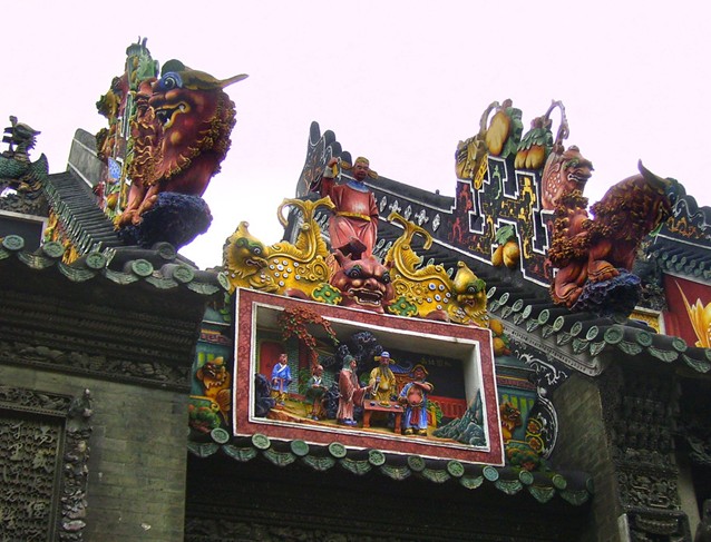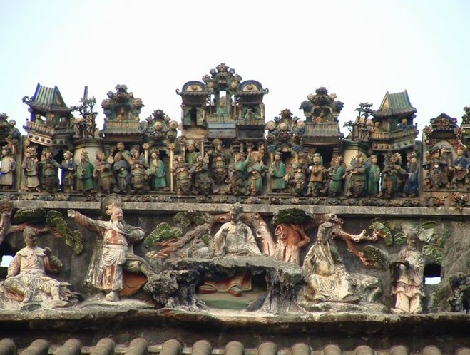 佛山有“順德宗祠南海廟”之說。順德宗祠文化相當(dāng)深厚,全盛時(shí)期境內(nèi)就有1萬多間宗祠,而順德陳家祠無論在建筑或規(guī)格上,都屬翹楚之作。其最大的亮點(diǎn),就在宗祠前座第一進(jìn)的正脊上。