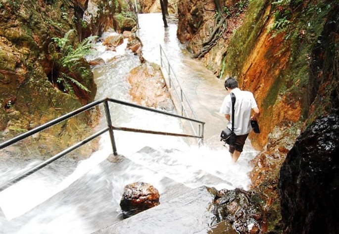 碧玉洞為峰間峽谷,兩邊怪石嶙峋、谷底狹徑崎嶇、洞中有玉巖珠瀑,聽玉石室、遇仙橋,垂云石、東天湖等景點(diǎn)。其中,玉巖珠瀑為西樵山最大瀑布。