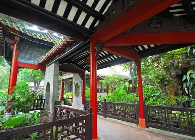 園內(nèi)有大量裝飾性和欣賞性的陶瓷、灰塑、木雕、玻璃。園內(nèi)妙聯(lián)佳句俯仰可拾,名人雅士音韻尚存,藝術(shù)精品比比皆是,令人流連忘返。園林藝術(shù)處理頗具匠心。園內(nèi)疊石假山,曲水流觴,曲徑回廊,景趣盎然。銀杏千秋,百齡龍眼,玉棠春瑞,沙柳飄揚。閑步曲橋喜看金鯉碧波嬉戲;徐行花徑,好賞綠樹時花撲面。時而庭園內(nèi)傳出裊裊弦歌,聽一粵曲,令人心清耳悅,如醉如癡。園內(nèi)保存的一套清朝乾隆年間評定的“羊城八景”,就是一套僅存于世的清代舊羊城八景套色雕刻玻璃珍品,已被初步鑒定為國家一級保護文物。