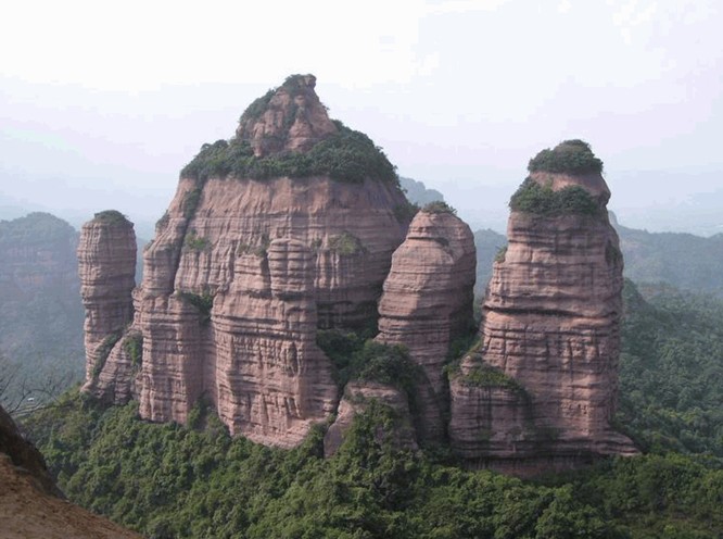 2、丹霞山:位于粵北韶關(guān)市仁化縣城南九公里處,以“奇,險,美”著稱,因“色如渥丹,爛若明霞”而得名。“桂林山水甲天下,不如廣東一丹霞。”這是人們對丹霞山的贊美之語。