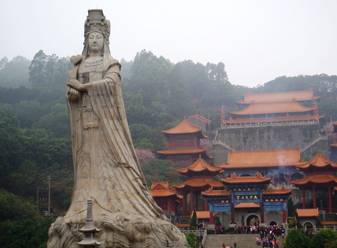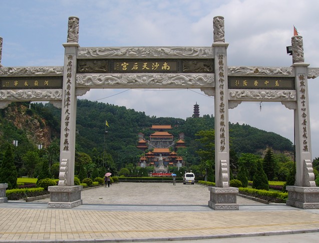 南沙天后宮,緊臨珠江出??诹尕暄?,坐落于大角山東南麓,依山傍水,其建筑依山勢層疊而上,殿宇輝煌,樓閣雄偉,在天后廣場正中就是石雕天后圣像,是為紀(jì)念海上女神林默而建,建筑特點(diǎn)是集北京故宮的風(fēng)格和南京中山陵的氣勢于一體,其規(guī)模是現(xiàn)今世界同類建筑之最,被譽(yù)為“天下天后第一宮”,也是東南亞最大的媽祖廟。天后圣像高達(dá)14.5 米,屹立在天后宮廣場正中。整座天后宮四周綠樹婆娑,殿中香煙裊裊,置身其間令人頓生超凡脫俗的感覺。