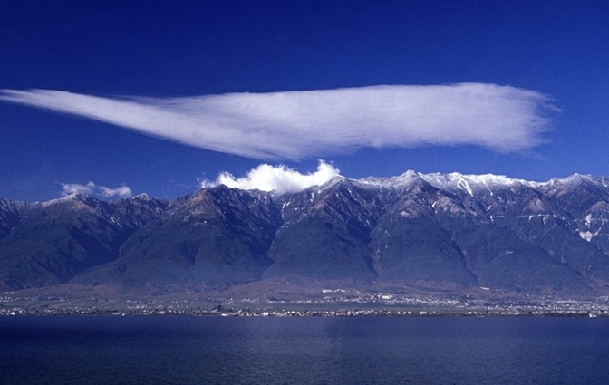 蒼山云景變幻萬(wàn)千,其中最有名的是“望夫云”和“玉帶云”。望夫云每年冬春季節(jié)常出現(xiàn)于玉局峰頂,這云出現(xiàn)后洱海隨即狂風(fēng)大作掀起陣陣驚濤駭浪,漁船不能出海,因此望夫云又被稱為“無(wú)渡云”。玉帶云不僅嫵媚動(dòng)人,而且按白族農(nóng)諺所說,她還是豐收的預(yù)兆:“蒼山系玉帶,餓狗吃白米”。