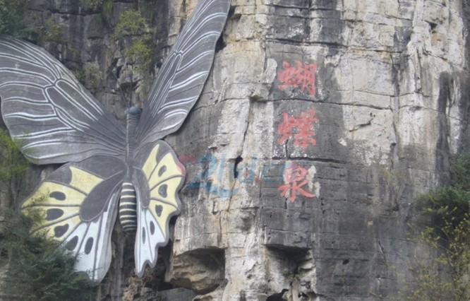 首先是“泉”。蝴蝶泉的水是從巖縫沙層中浸透出來(lái)的,水質(zhì)特別清冽,一 出地表便匯聚成潭,沒(méi)有任何污染。蝴蝶泉奔瀉而出的泉水,近年來(lái)又被公園管理者十分珍惜地蓄積于三個(gè)一潭比一潭大的水潭之中,供人觀賞,最大的一潭約10畝。蝴蝶泉由過(guò)去的一潭,變?yōu)楝F(xiàn)在的四潭,這是蝴蝶泉公園內(nèi)最顯眼的景觀。