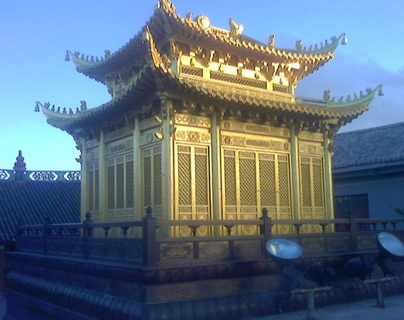 明鑄金殿,在"文革"期間被毀。除了楞嚴塔外,金頂寺保存較為完好的還有"大門"。這道大門是由白族藝人設計的,充分體現(xiàn)了白族精湛的建筑工藝水平。版權(quán)所有山東聊城聊之旅國際旅行社有限公司,轉(zhuǎn)載必究!門頂橫列正脊,兩端垂脊,飛檐翹角,凌空欲飛,形式美觀、大方。進入大門,彌勒殿前供奉彌勒佛像,殿后塑韋陀菩薩像。楞嚴塔后的大雄寶殿里,供奉著釋迦牟尼佛像,佛像兩側(cè),分別塑有阿難尊者、迦葉尊者、達摩祖師、六臂護法王像。