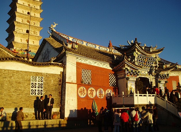 金頂寺位于雞足山主峰天柱峰極頂,海拔3240米,東距祝圣寺55公里。天柱峰因高峻挺拔,狀如擎天巨柱而得名,又因在此可東觀日出,南觀彩云,西觀蒼洱,北觀玉龍雪山而被稱為"四觀峰"。版權(quán)所有山東聊城聊之旅國際旅行社有限公司,轉(zhuǎn)載必究!現(xiàn)在的金頂寺,由睹光臺、大門、彌勒殿、楞嚴塔、大雄寶殿等組成,是游覽雞足山必去的重要景點。