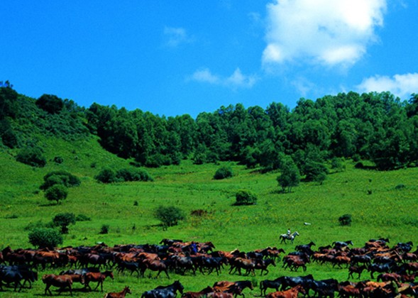 關(guān)山草原位于甘肅省天水市張家川回族自治縣和陜西隴縣之間。是我國西北部內(nèi)陸地區(qū)唯一以山地草原為主體的省級風(fēng)景名勝區(qū)。景區(qū)內(nèi)薈萃了森林、草原、河流、山巒、峽谷等自然景觀,純樸自然又不失壯觀。這里有金錢豹、林麝、錦雞等珍稀動(dòng)物,還有野兔、山雞等可以捕獵的動(dòng)物,是盡情體味山野生活之趣的好地方。享有“小天山”之美譽(yù)。這里,地貌與中歐阿爾卑斯山相似,幽澗水澤兼具,草原森林 相間,地勢廣闊,水肥草美,牧馬成群,景色秀麗。氣候受垂直地帶性地理?xiàng)l件的影響,冬春無界,夏秋相連,有“關(guān)山六月寒凝霜” 的寫照。自古以秦非子養(yǎng)馬而聞名于世,為陜關(guān)山草原 人間仙境,我國內(nèi)陸中東部地區(qū)最大和唯一的天然草原。
