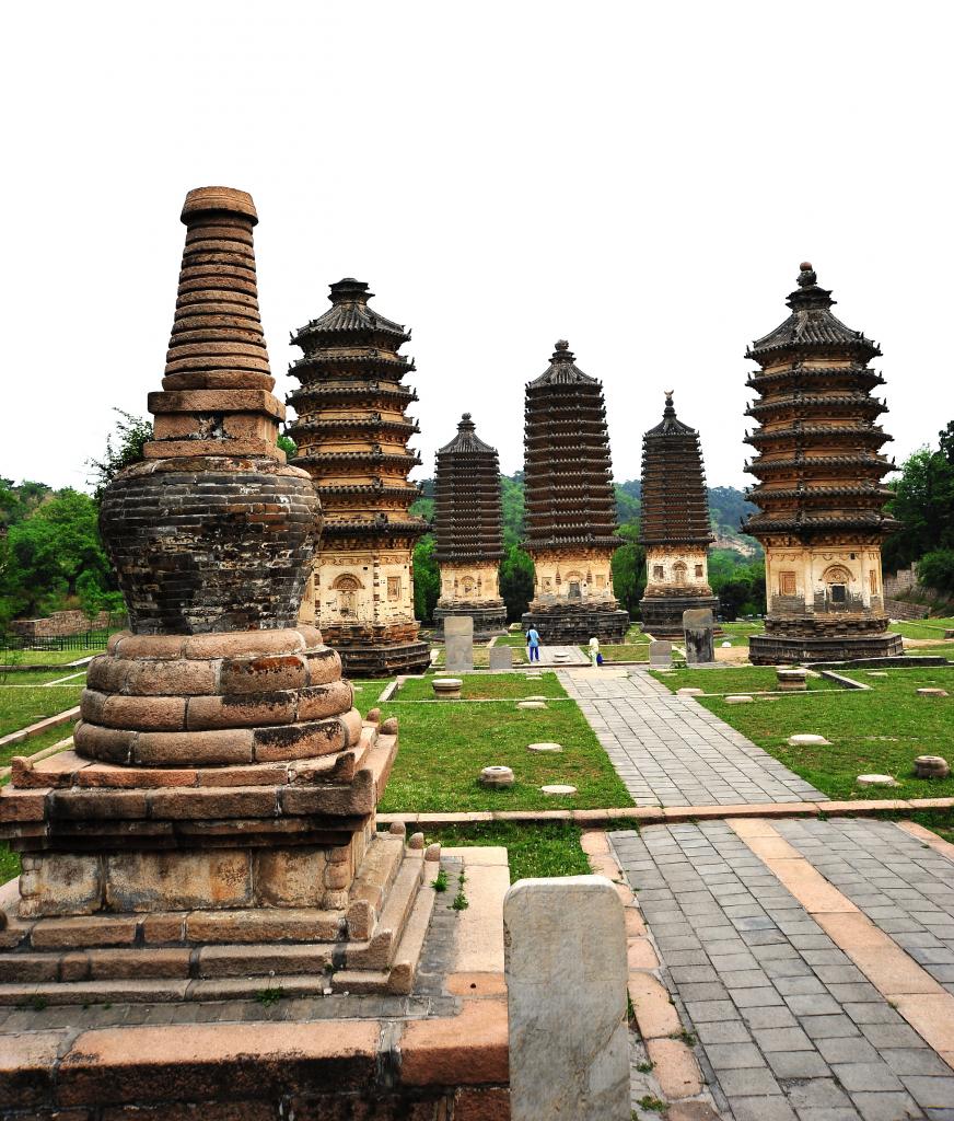 經(jīng)修繕,現(xiàn)景區(qū)內(nèi)可供參觀(guān)的古塔有18座。塔的形制、風(fēng)格各異。其中,密檐式磚塔共計(jì)有7座。其整體形象分別由“須彌座”式的塔基,雕刻有門(mén)窗、佛像的塔身,層層密檐和塔剎等部分組成。外輪廓線(xiàn)條挺拔秀麗,磚雕精美細(xì)膩,是研究古代建筑美學(xué)及佛教文化的絕好資料。