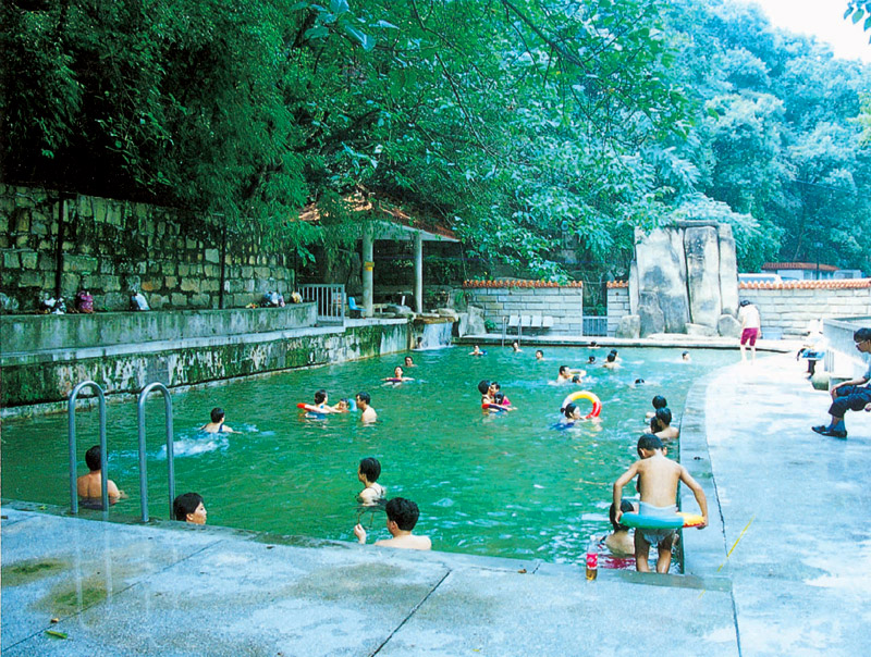 北溫泉的水溫一般為35℃-37℃,日流量達(dá)5675噸,屬弱堿性硫酸型礦泉,水中富含多種微量元素,不僅含鈣量高,水中還含有稀有的氡元素,對(duì)皮膚、關(guān)節(jié)、腸胃等部位疾病療病效果極佳。創(chuàng)建公園以后幾經(jīng)擴(kuò)建,目前已擁有室內(nèi)浴室75間,長(zhǎng)50米、寬16米的國(guó)家標(biāo)準(zhǔn)游泳池一個(gè)、現(xiàn)又新建了室內(nèi)游泳三角池和兒童嬉水池。此外,北溫泉附近存有唐宋以來(lái)的眾多題刻,還是中國(guó)游泳隊(duì)的訓(xùn)練基地之一。