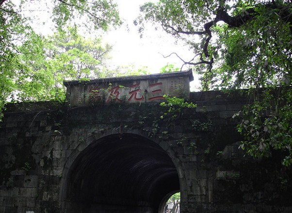 三元及第坊在靖江王城南面正陽(端禮)門上。清代學(xué)者阮元任兩廣總督時(shí)為連中“三元”的陳繼昌所立。三元, 是省級(jí)的“鄉(xiāng)試”、全國(guó)的“會(huì)試”和皇帝親自主持的“殿試”均名列第一, 分別獲得“解元”、“會(huì)元”、“狀元”稱號(hào)的縮略。自唐代以科舉取士1000多年來, 連中三元的僅13人, 清代兩百多年中僅有2人。陳繼昌是臨桂人, 把用巨石鐫刻的牌坊置于王城正門之上, 是封建社會(huì)給科舉成名者的至高榮譽(yù)。