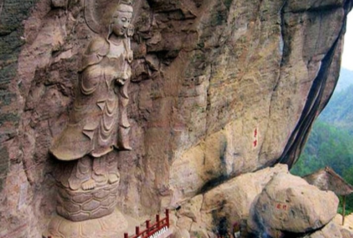 虎嘯巖位于二曲溪南,怪石崔嵬,流水迂回,是一個(gè)獨(dú)具泉石天趣的佳境?!盎⑾`洞”4個(gè)大字高勒于巖上。蟠踞在一線天北面,相傳曾有仙人騎虎吼嘯其上,故名?!盎[”之聲,來(lái)自巖上的一個(gè)巨洞,山風(fēng)穿過(guò)洞口,便發(fā)出怒吼,聲傳空谷,震撼群山。主要景點(diǎn)有天成禪院和虎嘯八景。