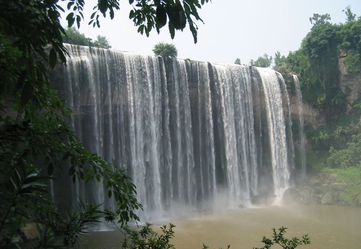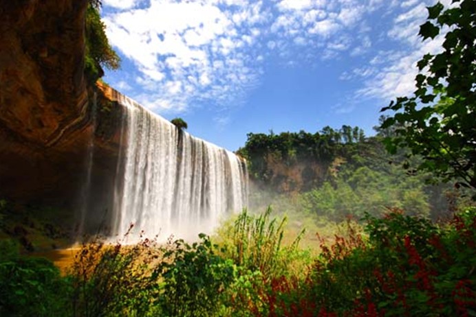 青龍大瀑布高120米,寬40米共有3級呈階梯狀,瀑布從崖頂騰空而起如同從天而降,讓人很容易記起李白“飛流直下三千尺,疑是銀河落九天”的詩句,瀑布?xì)鈩莅蹴?,猶如千軍萬馬,直搗深谷,水流過處,飛珠濺玉,雷鳴轟動(dòng)。潭面瀑布撞擊的水花如同千簇綻開的雪蓮,壯觀無比。