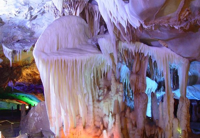 距九華山164公里。蓬萊仙洞內(nèi)鐘乳累累,絢麗多彩;仙洞勝景,神奇幽幻。尤以巨幅山水壁畫、白色透明的羅紗帳、碧玉般的石花、潔白晶瑩的天絲“四絕”著稱。