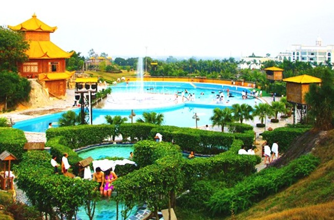 富都溫泉水富含納、鋰、偏硅酸等多種具有醫(yī)療價(jià)值的礦物元素,浴后皮膚爽滑,對(duì)肥胖癥、風(fēng)濕病、各類皮膚病均有良好療效。溫泉區(qū)設(shè)有大小溫泉池100多個(gè),其中有:水療按摩池、花池、藥療池、礦物療養(yǎng)池、酒池、冰池、山水游泳池、熱炕床、音樂(lè)溫泉噴泉的士高、水上樂(lè)園 。