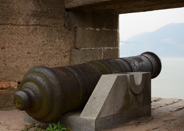 崖門古炮臺位于新會崖門出海水道東岸的古井鎮(zhèn)官沖村,最早設(shè)置于清康熙五十七年(1718年),并形成雛形,后于清嘉慶十四年(1809年)正式設(shè)立興建。崖門古炮臺雄踞新會崖山,倚山面海,緊緊扼守著珠江八大出??谥弧麻T通往南海的進(jìn)出水道。崖門大橋是跨越崖門水道的特大型雙塔單索面斜拉橋,全長1289米,跨度668米,橋下可通航5萬噸級船舶,跨度之大為目前國內(nèi)同類型橋梁之最,亞洲第一,世界第二。