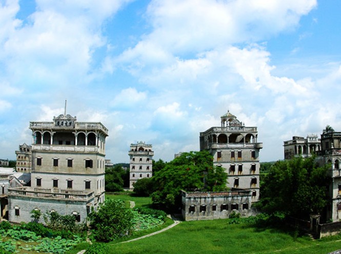 自力村碉樓群位于開平市塘口鎮(zhèn),是世界文化遺產(chǎn)地之一。[1]該村自然環(huán)境優(yōu)美,水塘、荷塘、稻田、草地散落其間,與眾多的碉樓、居廬相映成趣,美不勝收,形成一幅陽(yáng)春煙景田園詩(shī)意般的農(nóng)耕水墨畫,獨(dú)具嶺南鄉(xiāng)村氣息的洋式城堡村落。