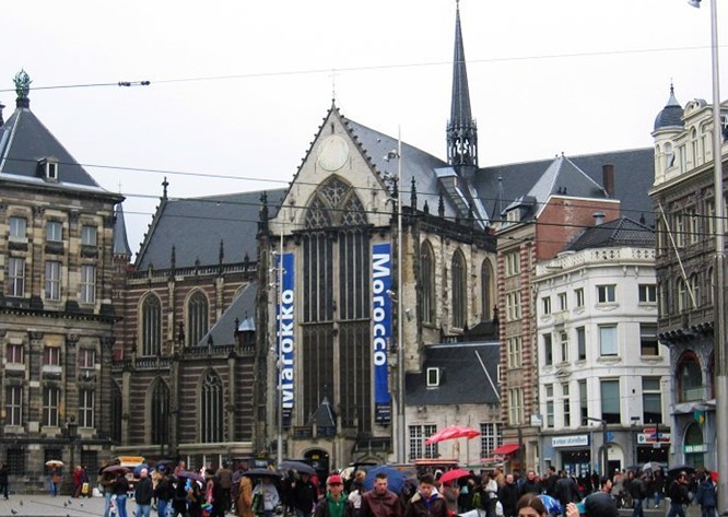 離中央火車(chē)站不遠(yuǎn)的水壩廣場(chǎng)(Dam,也叫多姆廣場(chǎng)),可以說(shuō)是阿姆斯特丹市市中心的起點(diǎn),也是整個(gè)城市最有活力的地方。這里到處充斥著咖啡的香味、搞怪的街頭藝人和人來(lái)人往的各國(guó)觀光客。