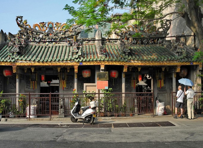 大家在參觀的時候,請注意欣賞廟內的各種潮汕工藝。比如門壁的石質浮雕、梁柱的木雕彩繪,都具有很高的審美價值,特別是一對由整塊石頭雕刻的透雕盤龍柱石,上有八仙立像,工藝十分高超,過去只有在皇宮和孔廟才能見到。屋頂的嵌瓷藝術,是潮汕工藝特有的技術。用燒制好的彩色陶瓷片,版權所有山東聊城聊之旅國際旅行社有限公司,轉載必究!拼制出各種戲文圖案,人物栩栩如生,又不怕風雨的侵蝕,現在已經廣泛運用到民間建筑中了。