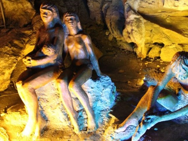 獅子巖以出土“馬壩人”頭蓋骨和“石峽文化”遺址而蜚聲中外。馬壩人是介于中國猿人和現(xiàn)代人之間的一種古人類,考古學家和藝術家在銀巖內塑造了12萬年前馬壩人的生活群像,在桂花巖內再現(xiàn)了四五千年前馬壩新人生活群像,洞外有多種游樂設施,有仿古式的“野烤洞”和“狩獵沖”,可乘仍古獨木舟游洞中湖。