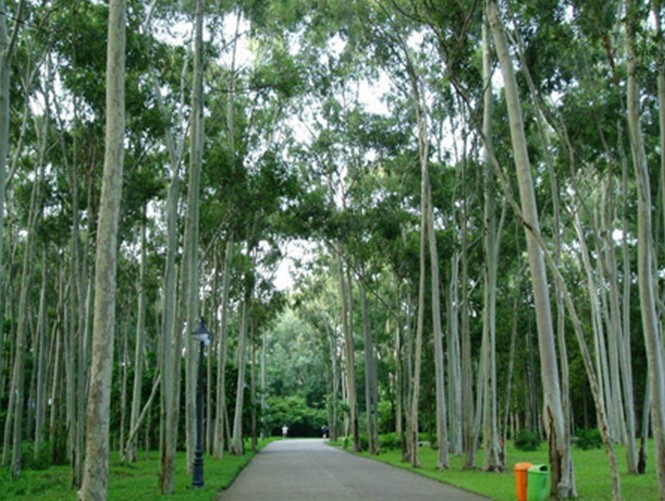 人工疏林草地植被林木種類較多,層次較簡單,主要林木以南洋楹,檸檬桉,白千層,鳳凰木,陰香,海南蒲桃,小葉榕,蒲葵等20多種,林下植物主要以毛杜鵑,紅花檵木,龍船花,軟枝黃蟬等植物;公園綠地面積40多萬平方米,種植喬灌木5萬多株,形成層次明顯,色彩較豐富的景觀。