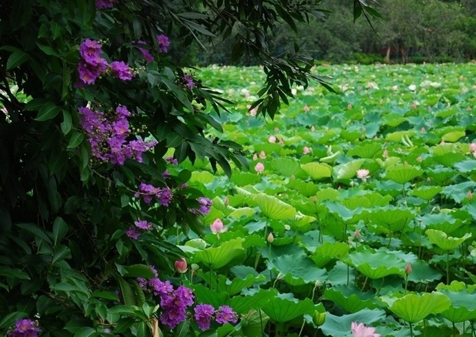 荷花是洪湖公園的主題花卉。版權(quán)所有山東聊城聊之旅國(guó)際旅行社有限公司,轉(zhuǎn)載必究!公園利用二、三級(jí)湖廣植荷花、睡蓮和其它水生花卉,面積達(dá)100多畝,品種100多個(gè),是華南地區(qū)種植荷花面積較大且品種較多的荷花景觀種植基地。自1988年起每年舉辦一屆荷花展,前來參觀荷花景觀的游客逐年增多,對(duì)弘揚(yáng)荷花文化,促進(jìn)社會(huì)主義精神文明建設(shè)起到了積極的作用。1996年以來還組織派遣專業(yè)技術(shù)人員和提供優(yōu)良品種,分別幫助指導(dǎo)香港和澳門園藝單位栽培荷花,增進(jìn)了深、港、澳地區(qū)之間的荷花文化交流。2001年6月,公園還建成開放了目前我國(guó)唯一以荷花詩(shī)文為題材的詠荷碑廊。碑廊長(zhǎng)100米,書法作品85幅,國(guó)內(nèi)著名書法家趙樸初、啟功、沈鵬、王子武、佟韋等為碑廊提供了精心之作。詠荷碑廊的建成開放,是深圳一個(gè)新的文化景觀和學(xué)習(xí)園地,也是市民和游客賞荷、詠荷、品書、觀景的好去處。