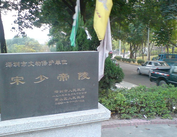 宋少帝陵,早期稱宋少帝墓,是南宋最后一個皇帝宋少帝趙昺的陵墓,位于中國廣東省深圳市南山區(qū)招商街道赤灣村少帝路、赤灣公園附近,是廣東省境內(nèi)唯一的一座皇帝陵寢。宋少帝陵是深圳市第一批重點文物保護單位。宋少帝陵,位于深圳市南山區(qū)招商街道赤灣村少帝路,就在赤灣公園和赤灣小學(xué)附近。這是廣東省境內(nèi)唯一的一座皇帝陵寢,也是深圳市第一批重點文物保護單位。