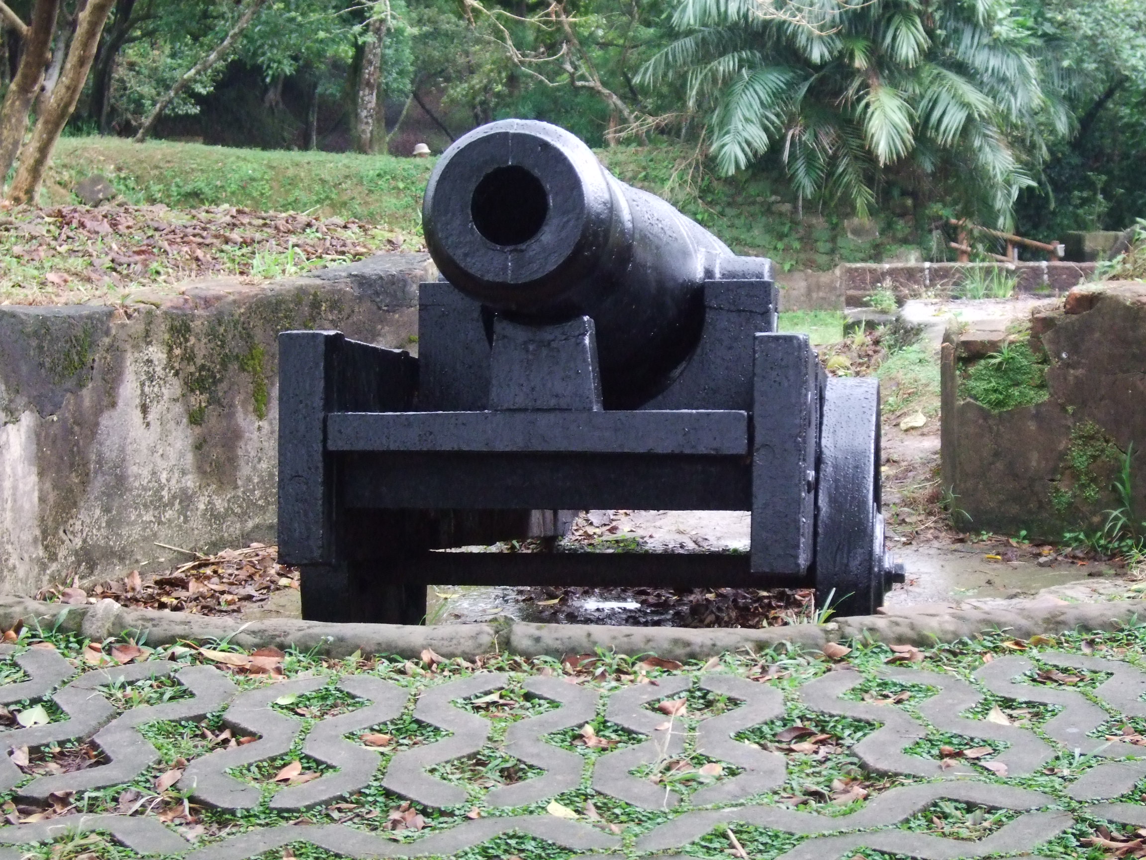二沙灣炮臺(tái)現(xiàn)經(jīng)重修,已約略可見(jiàn)當(dāng)年古炮堡壘的風(fēng)發(fā)英姿。勒有“海門(mén)天險(xiǎn)”四字的城門(mén)為全區(qū)的精神象徵,穿過(guò)古意盎然的拱門(mén),映入眼簾的是石鋪的廣場(chǎng)通道,兩側(cè)原為兵舍營(yíng)房,如今僅剩斷垣殘壁及如茵綠草;由通道盡頭的臺(tái)階拾級(jí)而上,即抵海門(mén)天險(xiǎn)的精華——古炮區(qū),數(shù)門(mén)外觀依舊完好的古炮,以及碉堡、炮墩、彈藥庫(kù)、古井等遺跡,發(fā)人幽思,由此俯望基隆港口,依稀可感受當(dāng)年戰(zhàn)事的激烈。