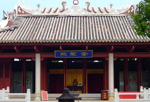 大成殿始建于北宋大中祥符四年(1011),元大德元年(1297)于今址重建。學(xué)宮原形制甚備,現(xiàn)僅存大殿及東西廡。大殿迭經(jīng)明萬歷三十二年(1604)、清康熙五十六年(1717)以至1973年大修,仍保留宋元建筑風(fēng)格。為全國重點文物保護單位。大成殿在防洪上采取了有效的建筑技術(shù),加高了殿堂臺基;設(shè)置了高35厘米的花崗石門檻,前檐用花崗石柱,左、右、后三面圍以高墻;采用了花崗石高柱礎(chǔ),尤其是正中四根金柱,石礎(chǔ)高達82厘米。