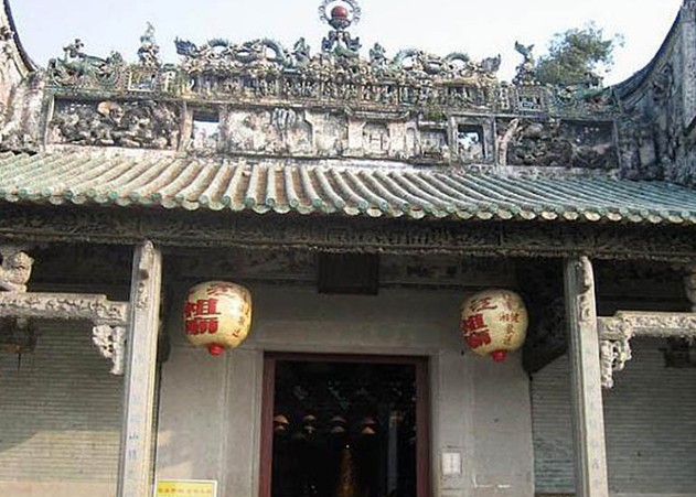 跨過三門,即位前有香亭的前殿。殿中供奉道教尊崇的諸神貼金夾紵造像。值得專的是殿中陳放的金漆木雕大神像,它是祖廟殿堂里重要的陳放。神像正面分上下兩層,上層雕刻內(nèi)容是"李元霸伏龍駒"的場面。整個金漆木雕的下層最為精彩。畫面中的李元霸暗指鴉片戰(zhàn)爭后加入反清義軍的粵劇演員李文茂。是雕刻的眾多人物手中, 高舉著寫有"李"字的旗幟,這字實(shí)際也是暗指參加義軍的李氏。廣東民間把"龍駒"比作"紅鬃烈馬",把洋人特別是英國人叫"紅毛鬼"。所以"伏龍駒"就是馴服"紅毛鬼"的比喻。尤奇妙的是,這幅表現(xiàn)古裝戲劇的畫面中,竟然混著幾個頭戴禮帽、身穿燕尾服的洋人。他們或被打翻在地,或跪地求饒,丑態(tài)百出。充滿了廣東人民對侵略者的憎恨。據(jù)說這幅構(gòu)思絕妙的金漆木雕,是光緒年間黃廣華老先生冒死用一年的時間創(chuàng)作出來的。